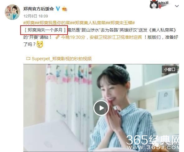 之后新剧《美人私房菜》开播,宣传期间作为女主的郑爽一直缺席。