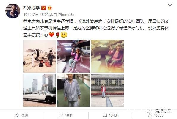10月爽爸发微博说郑爽给外婆搞了私人飞机到上海看病,被说炫富。