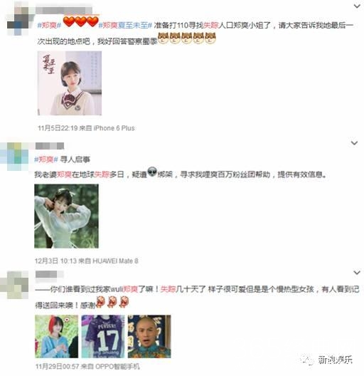 粉丝们也纷纷发微博,贴出寻人启事找爽妹。