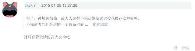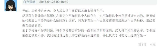 颜值这事儿咱先放放,武大学生喊冤的声音倒是震天响……这妹子“武大校花”的名号也被遭到质疑,不少武大的学生在网上伸冤,称黄灿灿根本就不是公认的“校花”,在跑男播出前根本不知道自己的学校还有个这样的校花……