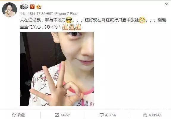 但对于大家的关心和突然上热搜这件事,戚薇本人的态度却非常平和,第一时间发半张脸的照片向大家报平安,