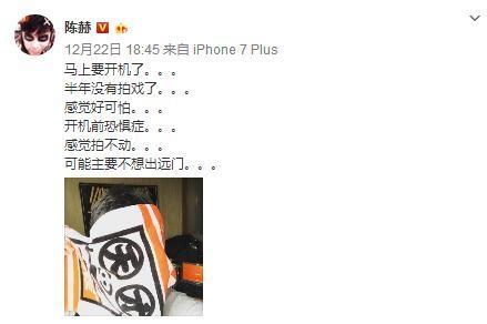 陈赫在微博上坦言新戏要开机了,感觉好可怕,感觉拍不动,可能主要不想出远门。本来就爱宅在家里的陈赫,如今有女儿之后变成女儿奴,或许就更加的不想出门了,不过为了奶粉钱,只能拼了。