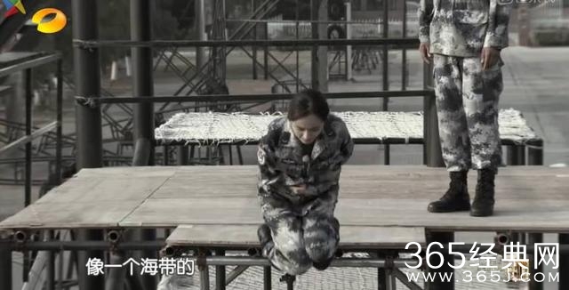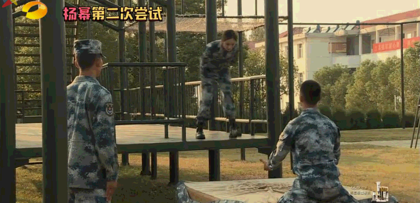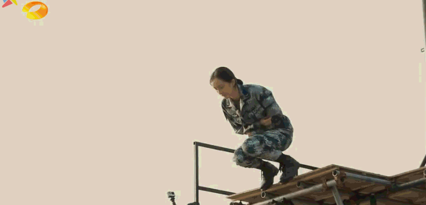 即便是换到了四米的高台,在紧张的情绪下,杨幂当然也还是没有完成标准的跳伞的动作。