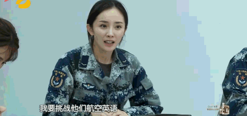 提到要挑战黄继光班时,杨幂说要挑战他们的航空英语,说完自己都笑了,真是一个机智girl。
