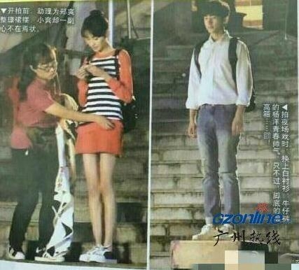 而在宣传《微微一笑很倾城》时,和郑爽妹子在一起的合照,也穿了增高鞋