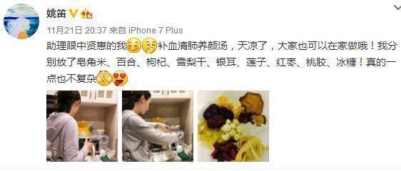 在马伊俐发微博的前几个小时,姚笛正好也发了一条微博!