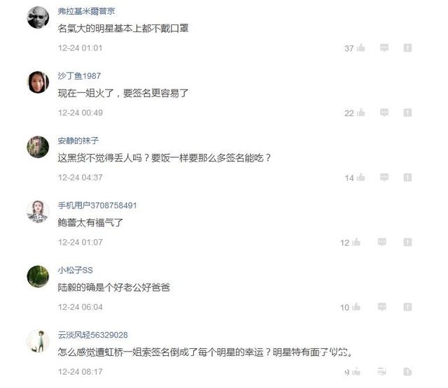 见到陆毅鲍蕾现身,虹桥一姐迅速冲上前要签名,可能是以前听说过虹桥一姐的大名吧,鲍蕾不自主的身体向后倾斜了一下,显然是被虹桥一姐的阵势吓住了,但随后鲍蕾还是给了她签名