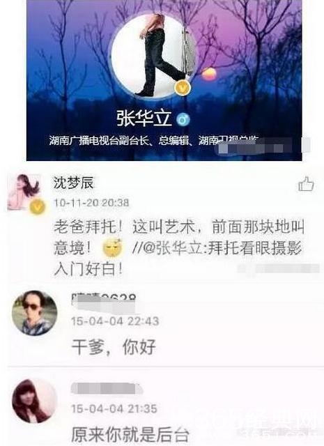 一条六年前的微博泄露了天机,原来湖南台副台长张华立是沈梦辰的爹!不过也有知情人说这位是干爹而不是亲爹,不过无论如何,沈梦辰被强推的理由也昭然于世了!