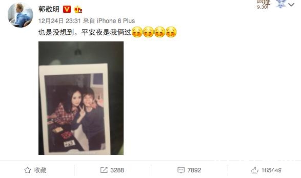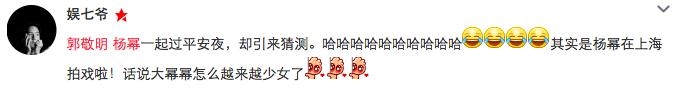 可以清晰地看到,郭敬明口中的我俩,就是杨幂和郭敬明。此微博一出,当即在网上引起了轩然大波,网友们的口水都快淹没了郭敬明和杨幂的微博了。网上的吃瓜群众纷纷指责杨幂在情感的风口浪尖上,居然还不和刘恺威一起过圣诞,而跑去上海和郭敬明一起过圣诞,而且举止亲密,似乎和刘恺威、王鸥深夜对剧本有异曲同工之妙。
