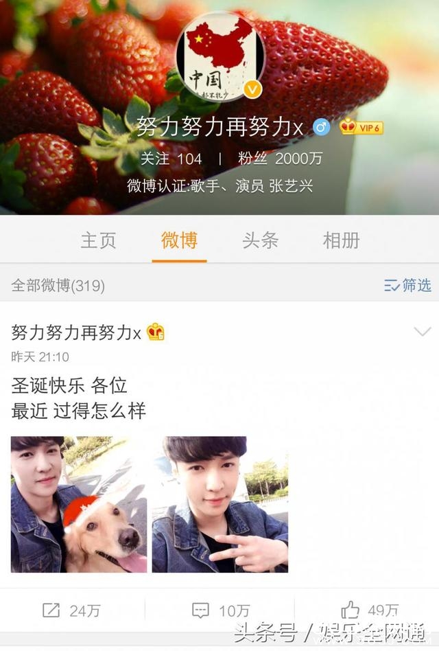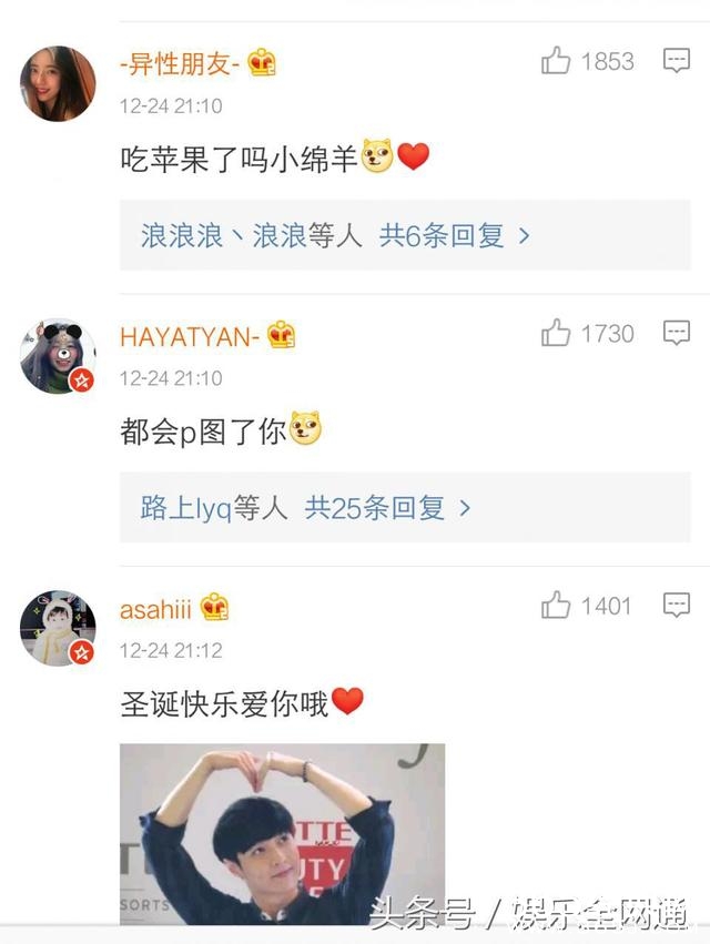 12月25日是圣诞节,在12月24日晚上平安夜的时候我们的“小绵羊”张艺兴发微博祝大家圣诞快乐。