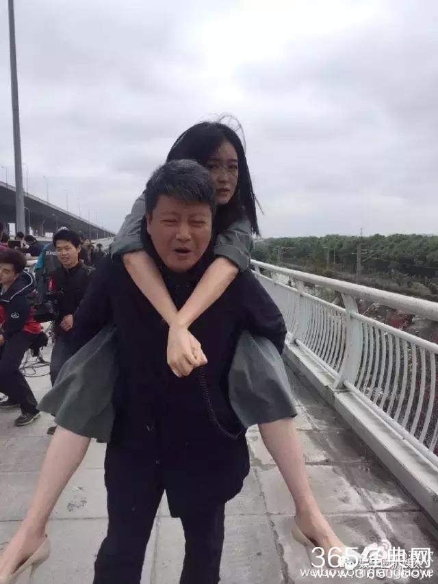 照片里,《欢乐颂》的导演背着蒋欣,一脸很劳累吃不消的样子。