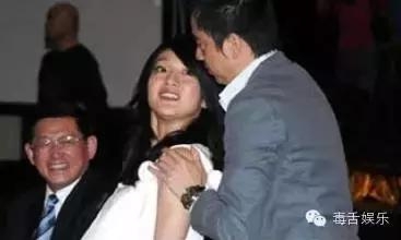 大庭广众之下,富豪搭住徐若瑄的香肩,还轻拍她的脸蛋。而徐若瑄则淡定自若,还弯下身子去迎合。