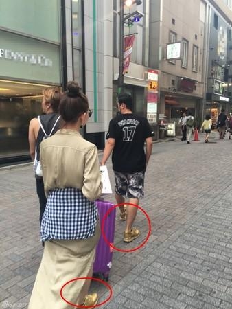 ▲▼网友在东京偶遇周杰伦与昆凌,因为一双「金色运动鞋」认出了偶像。(图/翻摄自恶霸妍微博、新浪娱乐)