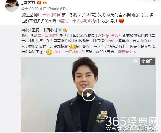 今天早上八姐姐还在刷着董力和阿拉蕾的写真的时候,突然看到浙江卫视《二十四小时》官微推送一条微博“董力正式加盟《二十四小时》第二季”,他将取代徐峥,作为固定MC和陈坤、吴磊、韩庚、大张伟以及周游进行整个第二季的录制。