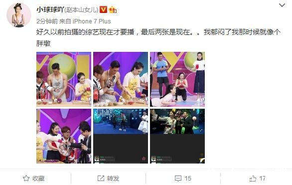 赵本山女儿爆照说:好久以前拍摄的综艺现在才要播,最后两张是现在。我郁闷了我那时候就像个胖墩。