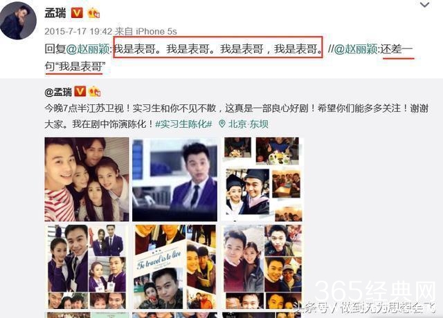 这个表哥是孟瑞,两人已经相识了十年之久!而在2013年的时候,孟瑞发微博说道了两人的友谊已经过了七年之痒!