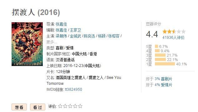 《摆渡人》已成为全民公认大烂片了!评分为4.4,这应该有调控吧!之前只有3,7分的!