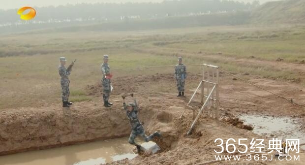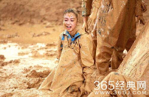 泥潭!想想应该是秋天录的节目,直接掉进去,真的还是挺冷的,也很脏!但是大幂幂真是叫都没叫,直接就爬起来往前走!