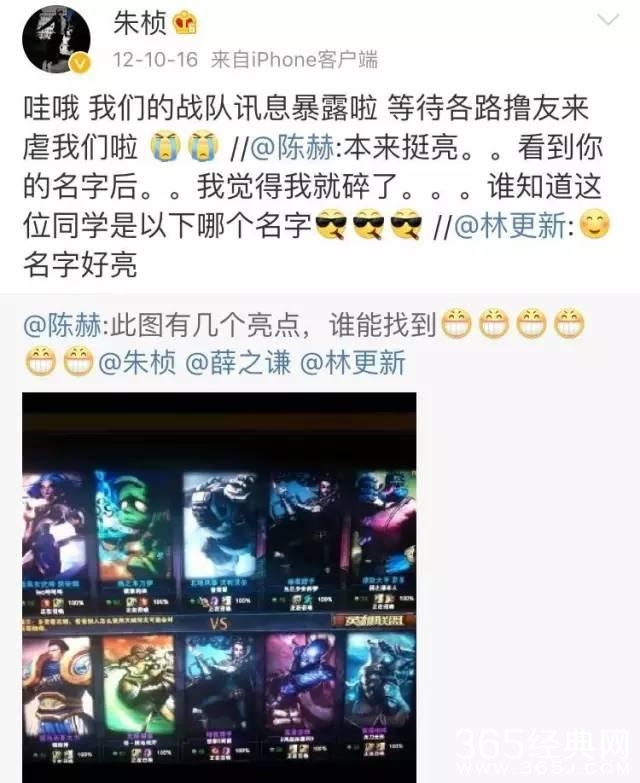 是朱桢把陈赫领入了电竞的大门,四年前陈赫就在微博上晒出和朱桢、薛之谦、林更新一起打游戏。