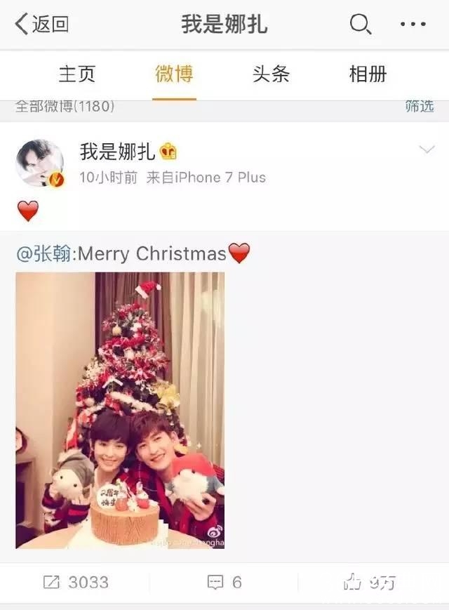 张翰就在微博晒出与亲亲女友古力娜扎一同庆祝圣诞节的照片,还配文:Merry Christmas,爱心~