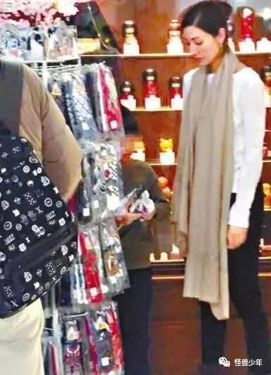 无聊的李嘉欣被困机场带着儿子逛商店消磨时间。