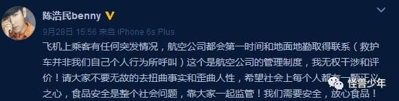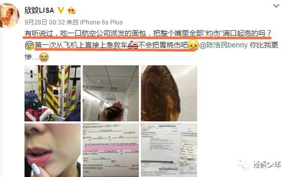 陈浩民老婆蒋丽莎,今年9月坐飞机吃航空公司派发的面包,把嘴烫伤,她发微博:“吃一口面包把整个嘴里全部灼伤满口起泡,不会把胃烧伤吧?”