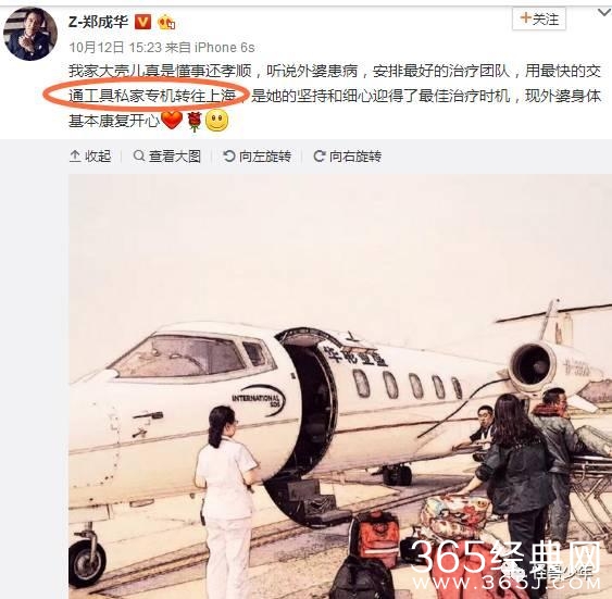 今年10月,郑爽爸爸晒郑爽送的私人飞机,赞扬自己的女儿孝顺
