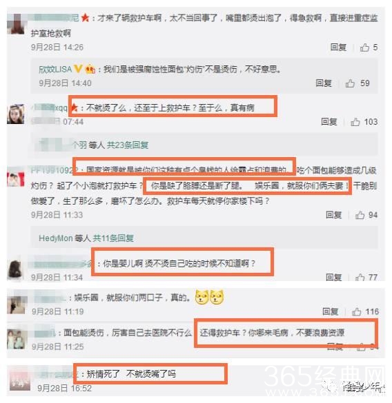网友叒坐不住了,开始喷:“不就烫个嘴吗?真矫情,娱乐圈就服你俩夫妻,你是缺胳膊还是断腿了?还叫救护车?浪费国家资源。”
