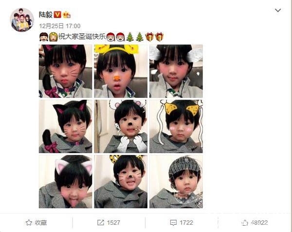 自从陆毅和鲍蕾的二胎女儿曝光以来,二人毫不掩饰的秀一家四口的幸福生活,(12月25日)圣诞节,陆毅就微博发图感谢两女儿陪爸爸过节日。