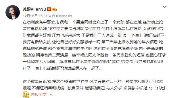 苏醒昨日微博发了一篇颇有深意的短文,自爆高中读书自己喜欢的女生就被同学抢走。苏醒在感情上真是毫无心机,经常被人黑。