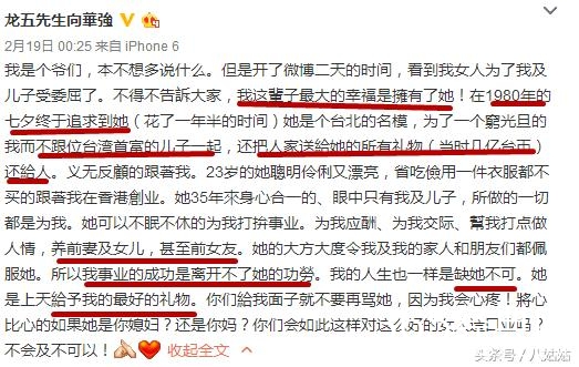 在这篇声明中,向华强不只是透露了好多细节,还不忘继续对老婆发表爱的宣言,类似“我这辈子最大的幸福是拥有了她”、“我事业的成功离不开她的功劳”、“她是上天给予我的最好的礼物”等。
