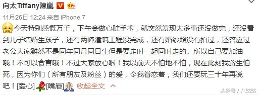 一个月之前,向太做了心脏手术,手术前曾更新微博表示出忧虑