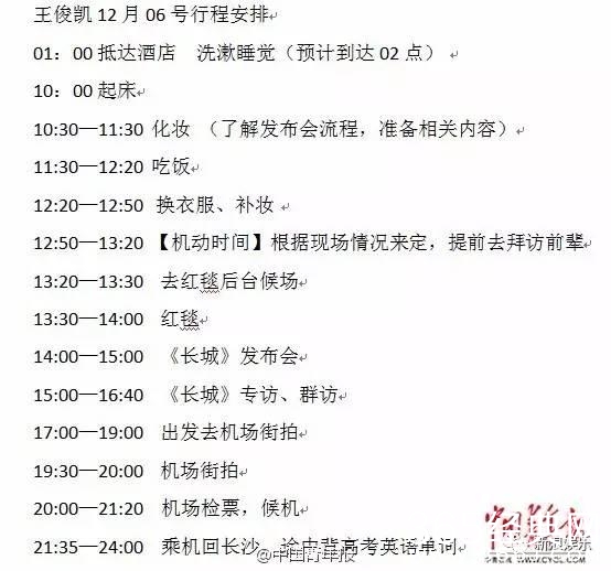 还在上高中的王俊凯,跑个宣传的一日行程也是满满当当。