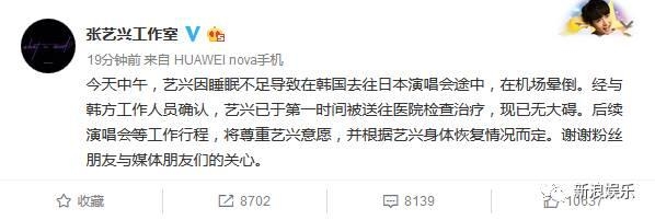 节目组给出的说法是张艺兴是因为过度劳累而造成的晕倒。