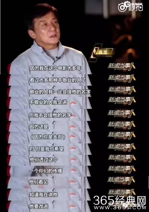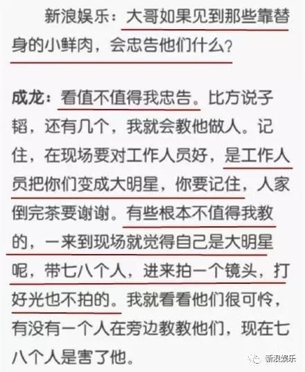 现在替身啊倒模啊乱七八糟的事情闹得这么厉害,成龙说给忠告的话,还得分人,有些人就不值得他去忠告!
