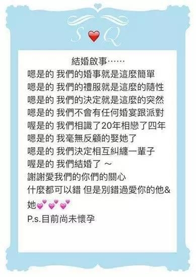所以公布恋情和婚讯都是通过工作室