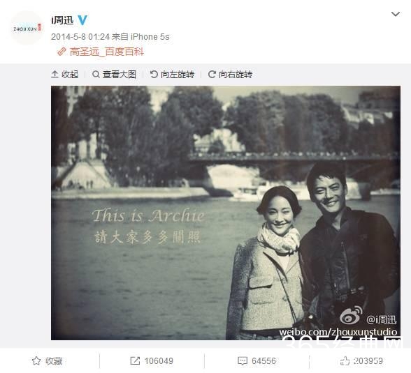 直接在微博甩出老公高圣远的百度百科链接