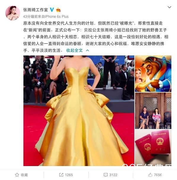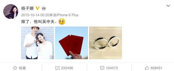 杨子珊也是直接在微博上公布自己结婚了