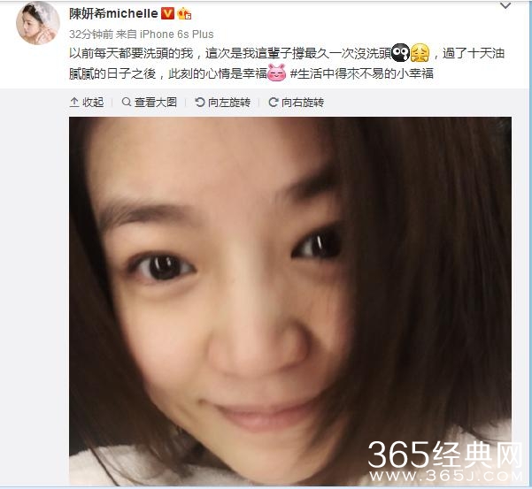刚刚生下小星星,现在还在坐月子阶段,连续十几天都不能洗头的陈妍希终于洗干净了头发,晒出的这张自拍照看起来皮肤真的好好。
