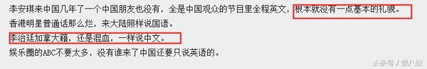 在爸爸回来了节目上,李安琪同样是全程英语,当时已经有不少网友反感。