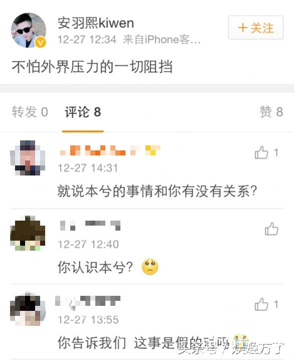 而网上也曝出本兮男友名叫安羽熙,在他今天发的微博意思耐人寻味,本兮被曝出因为抑郁症跳楼身亡,本身一个阳光积极向上的人怎么说跳就跳了?这一切都让人陷入不解的漩涡之中。