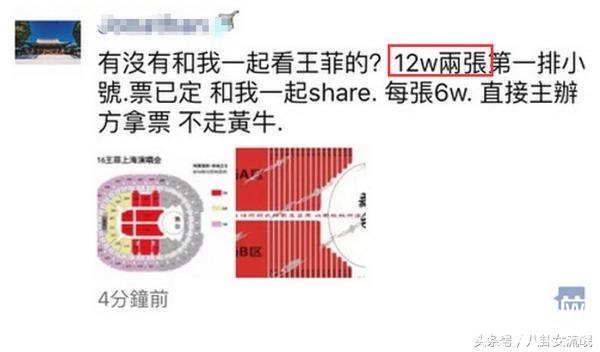 其实,说白了,王菲团队为了能炒高票价,把原价票都给了黄牛炒价,原本卖7800一张的内场票通过炒作,最后购买者实付价格可能就是13900-23000元一张。而内场前区2排座甚至被炒到99999一张的天价票。