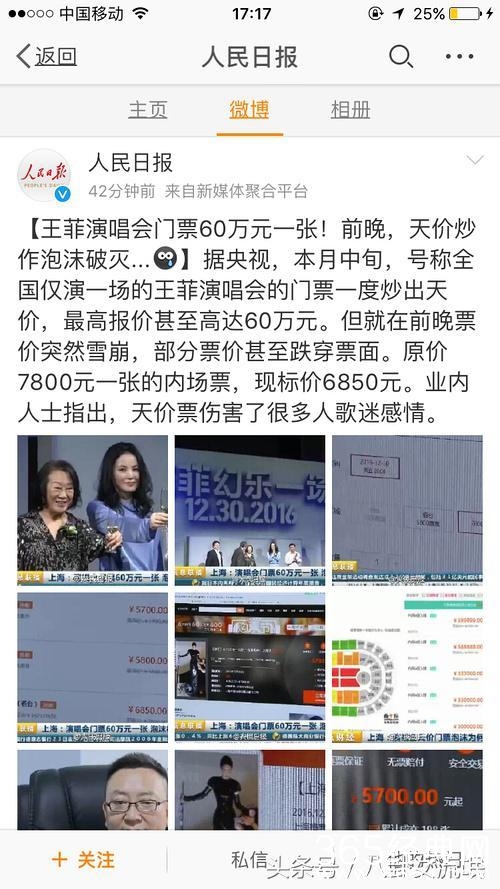 据央视与人民日报报道,号称全国仅演一场的王菲演唱会门票被炒出天价,最高报价甚至高达60多万元,并指出天价票伤害了很多歌迷。