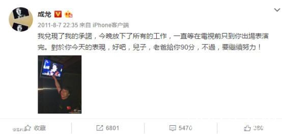 作为父亲,成龙确实没有太多时间与小房子相处,但看看他的微博,就会发现他真的只是像个普通父亲一样期望儿子健康,更期望儿子成才。只不过,曾经的小房子太让人心塞,年逾六十的老父亲还能保护你多久呢?小房子也应该体谅父亲的一番苦心。