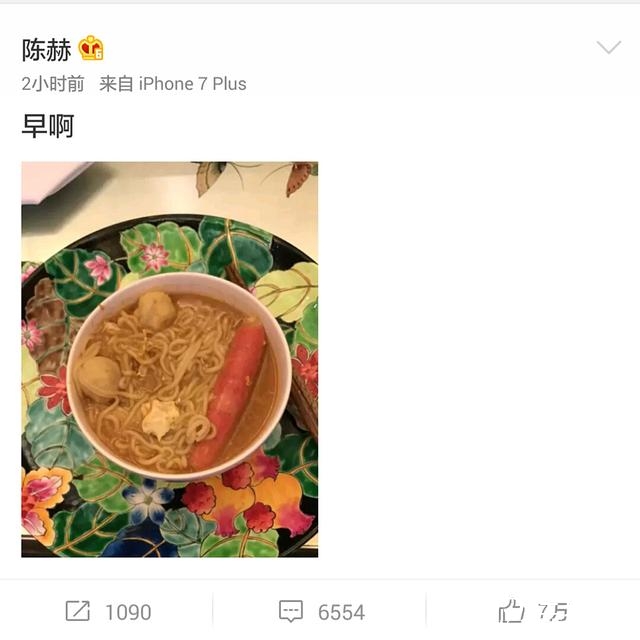 然而,就在今天早晨,吃多了“大鱼大肉”的陈赫改弄了碗面条,不过这碗面的摆相嘛就。。。。。各位自行体会