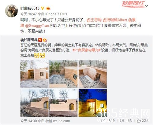 随后,叶良辰在微博公开认领豪宅,并再度以嚣张的“良辰体”隔空喊话“国民老公”王思聪、“百亿富少”汤珈铖以及娱乐圈里的“富二代”黄子韬与景甜:“不服来战!”