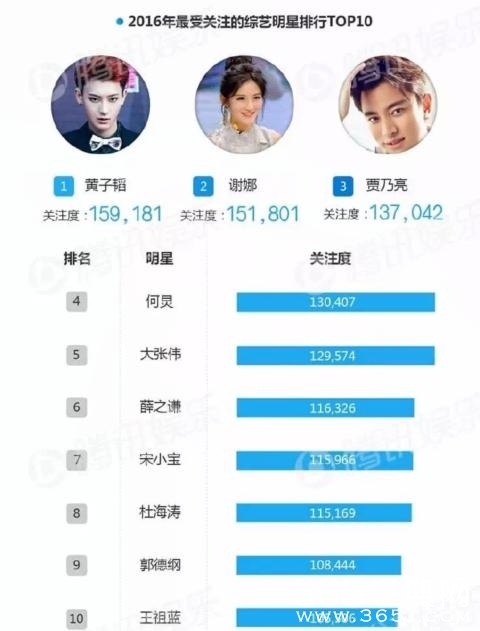 下面扒一扒2016年综艺明星关注度排行榜前十名都有谁?