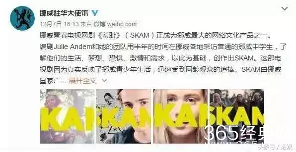 目前这部剧已经火遍北欧,据悉美国已经确定买下该剧的版权,明年将进行改编拍摄。而SKAM已经成为挪威最大的网络文化产品之一,连挪威驻华大使馆都专门发了一条微博宣传这部剧。