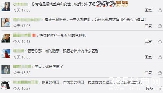 网友看照回应说:你肯定是没钱整容和变性,被我说中了吧!獠牙一漏出来,一帮人都在吐,为什么就喜欢拜那么恶心的造型!