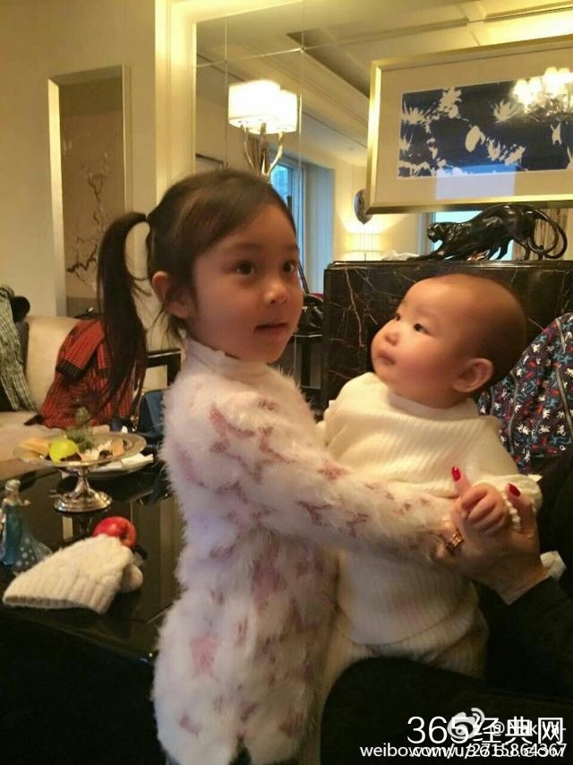 李小璐甜馨和小宝宝合影,甜馨还用手摸着小宝宝的耳朵,真是爱心爆棚。